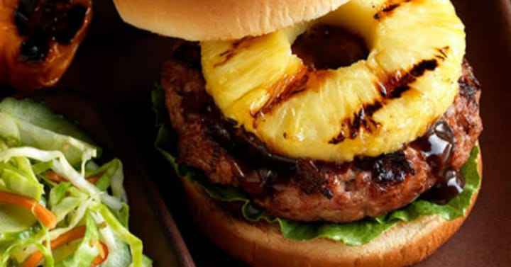 113 gr de res, queso amarillo, tocino, piña, jitomate, cebolla, rajas y lechuga.