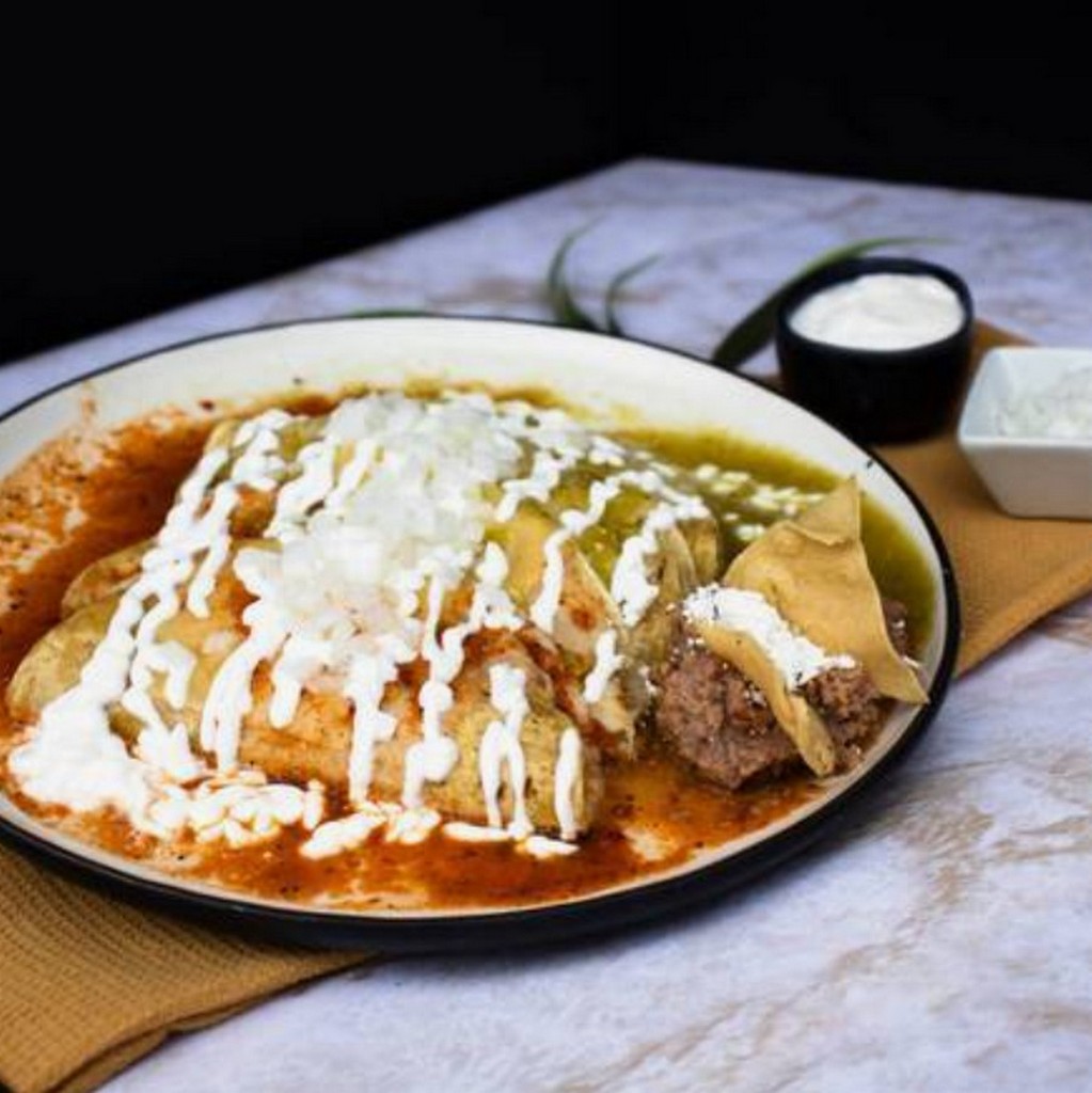 Puedes pedirlos bañados en salsa verde o roja, acompañados de frijoles, totopos y bolillo.