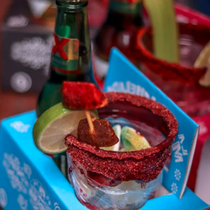 Escarchada con nuestra famosa sal de gusano, regular o tajín y limón.