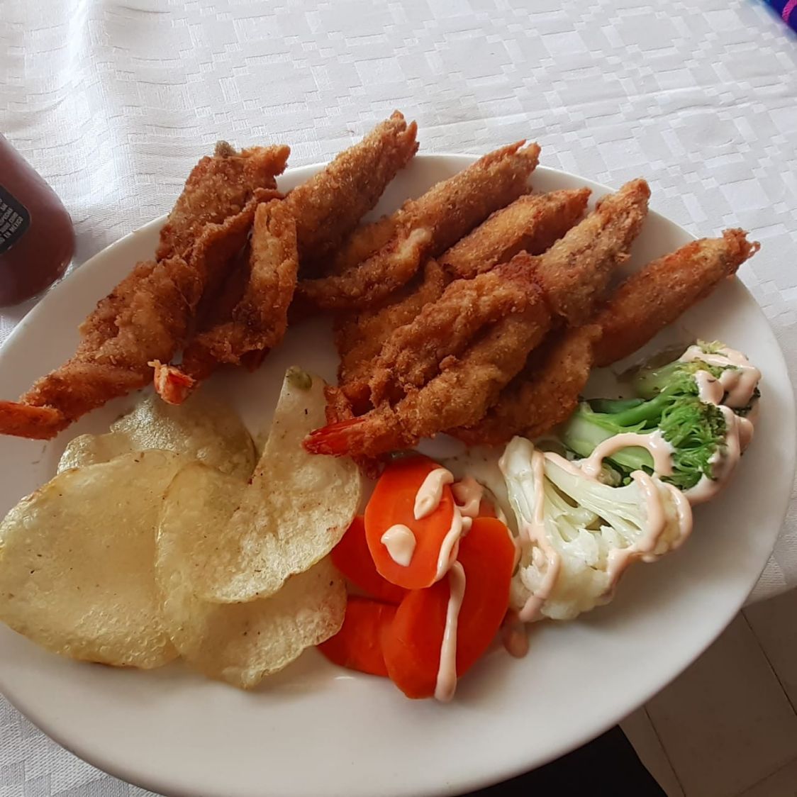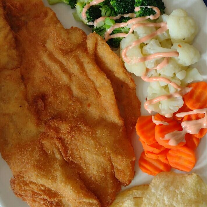 Acompañado de verduras al vapor y hojuelas de papas.