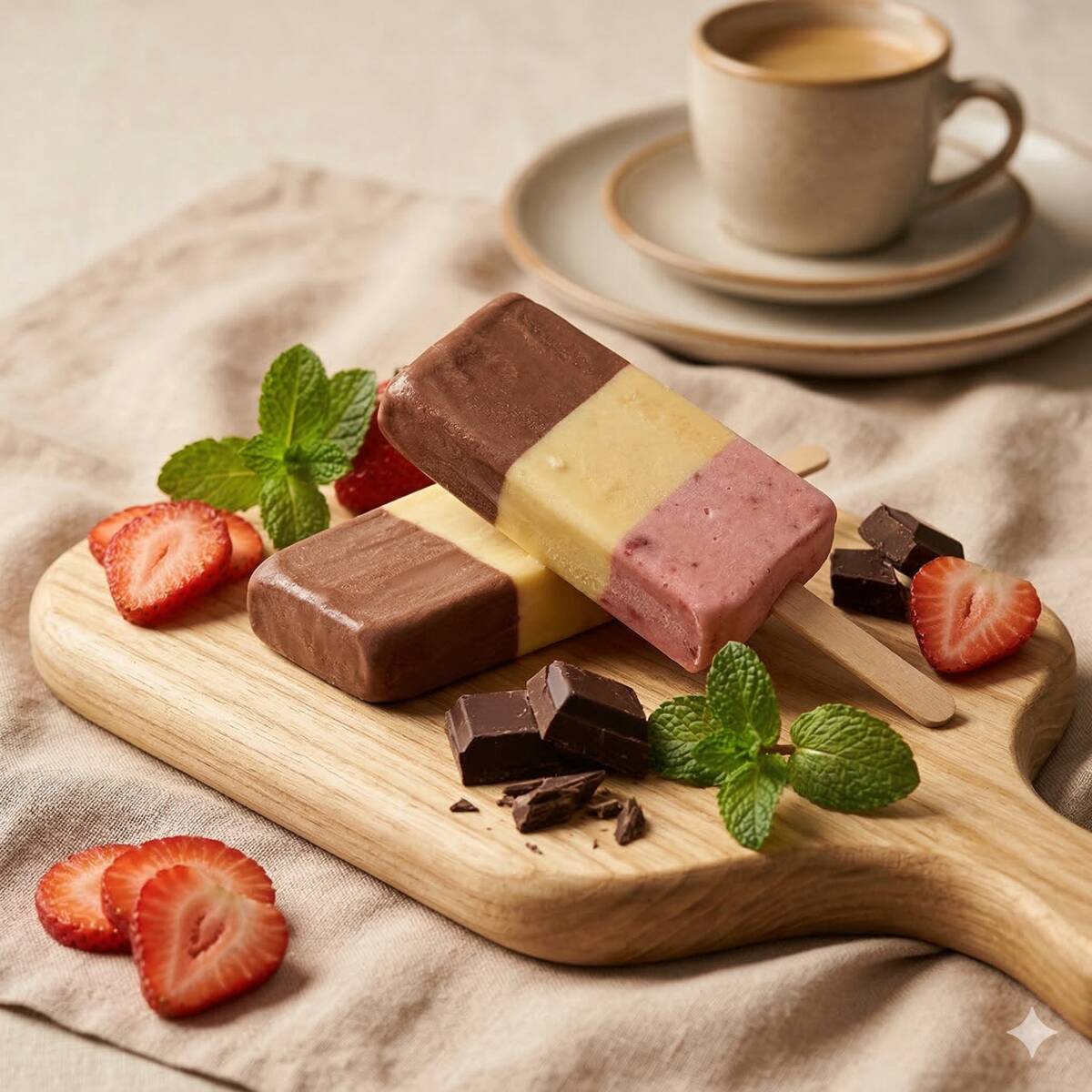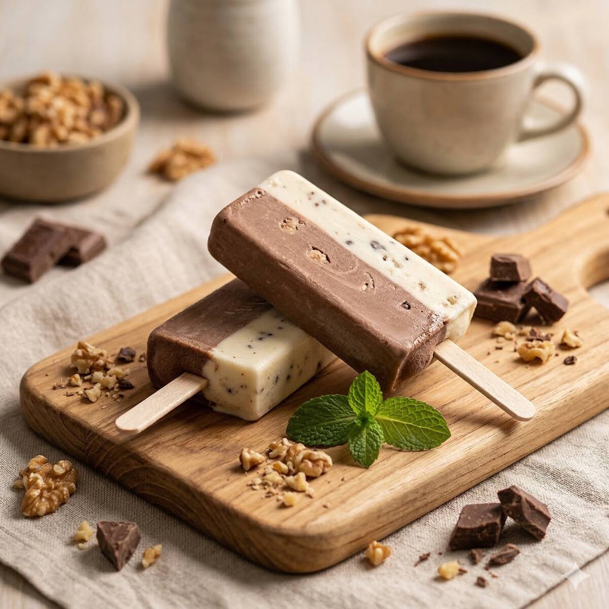 Tronco helado con una mezcla de sabores atrevidos como son chocolate, naranja y menta con ricas chispas de chocolate acompañado de una ligera capa de cobertura de chocolate.