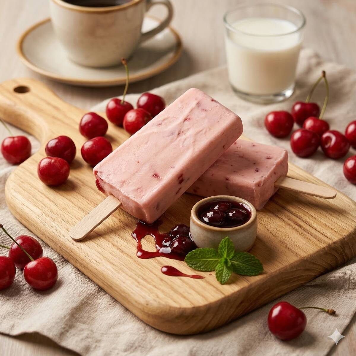 Delicioso Pastel de triple helado sabor chocolate, fresa y vainilla con cerezas. Cubierto con una crujiente capa de chocolate.