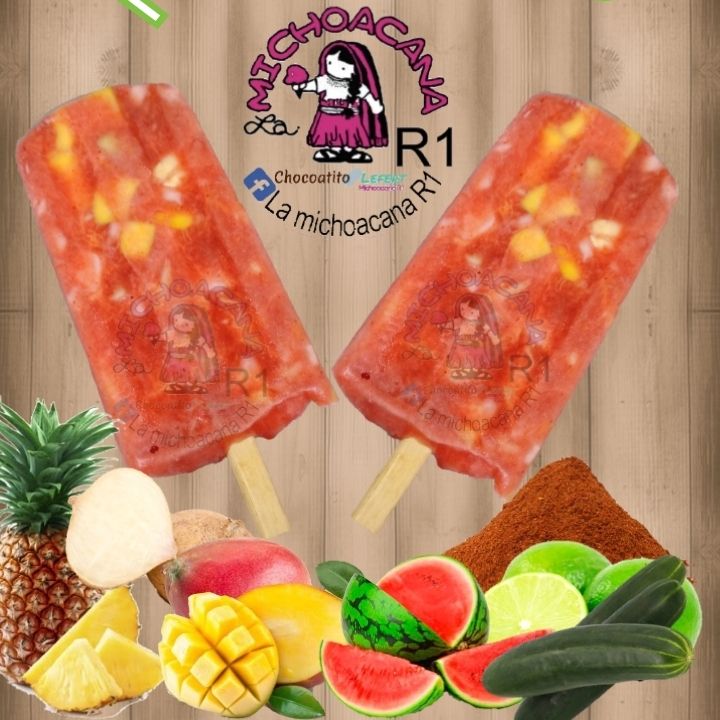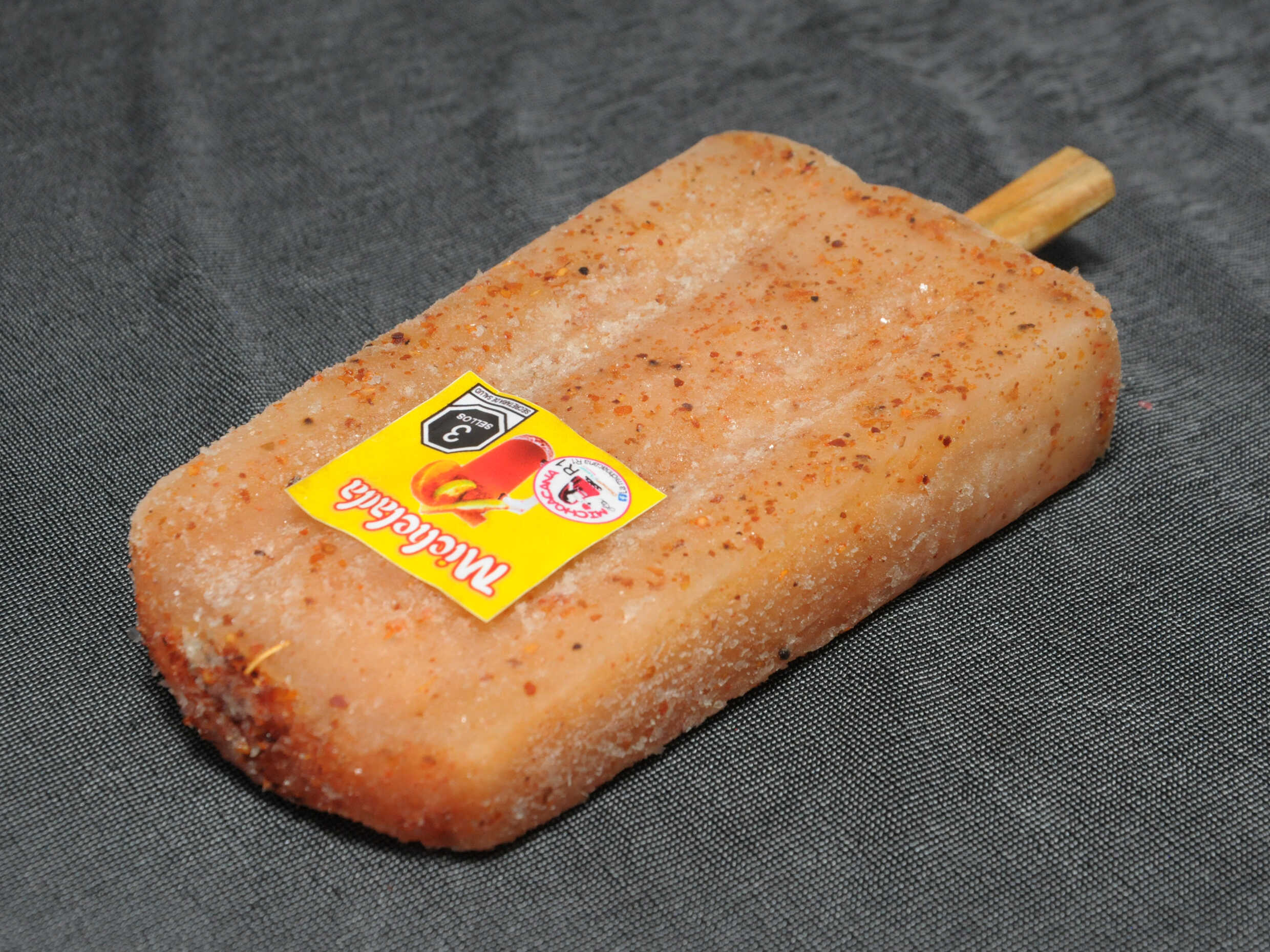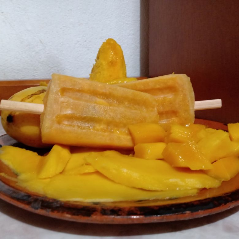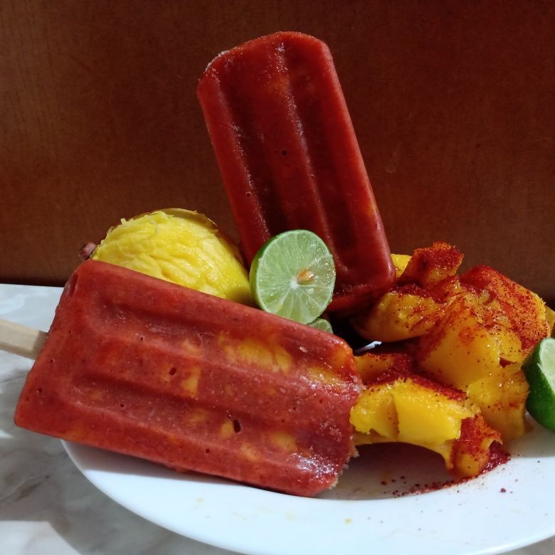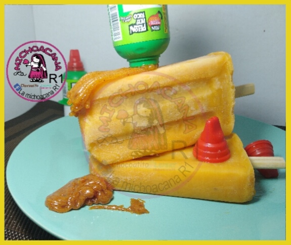 Paleta de mango con relleno de pelón pelorico sabor tamarindo.