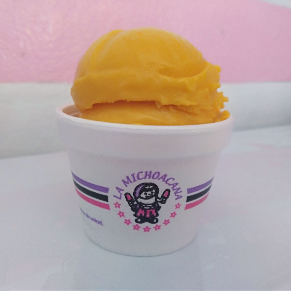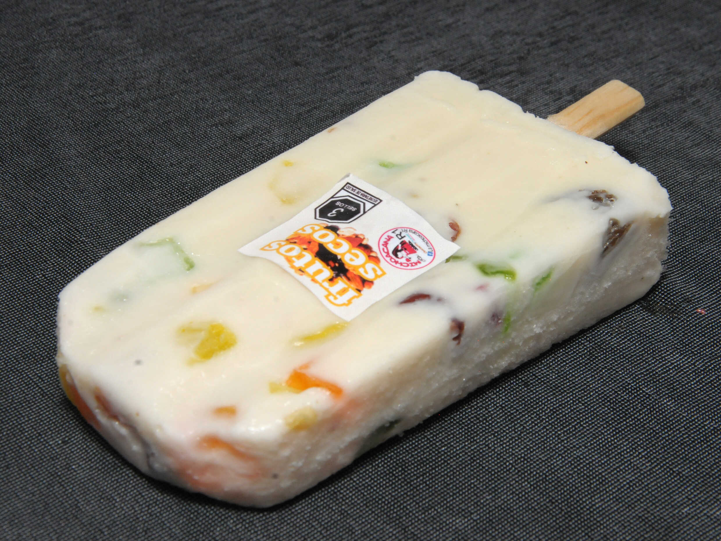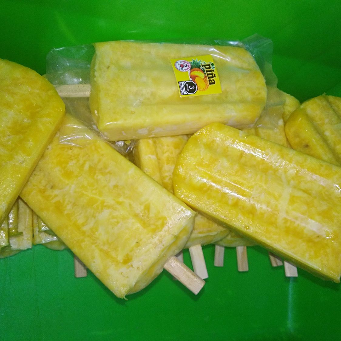 Paleta de mango con relleno de pelón pelorico sabor tamarindo.