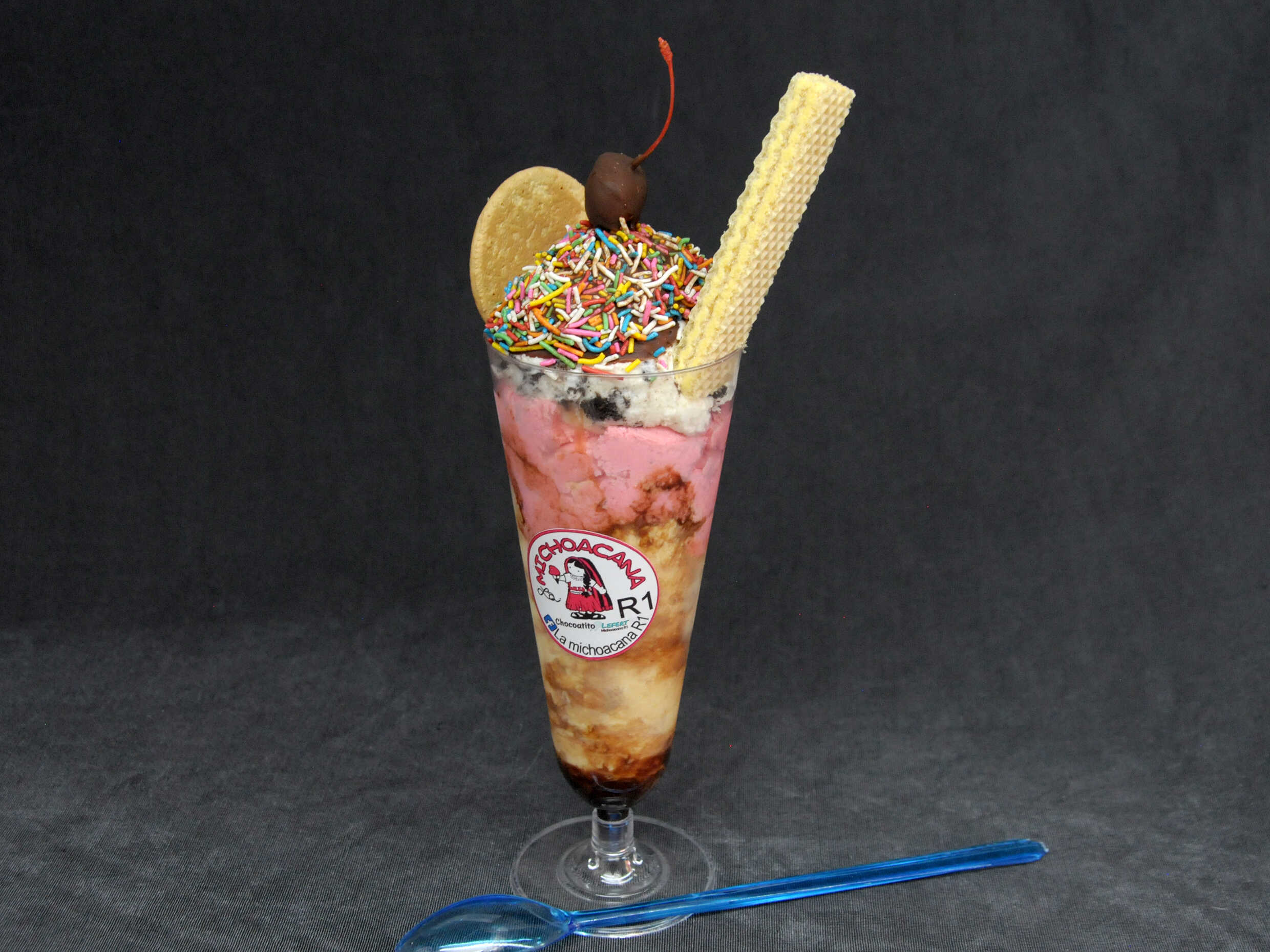 Preparada con helado del sabor de tu eleccion ,decorada con crema batida y topping