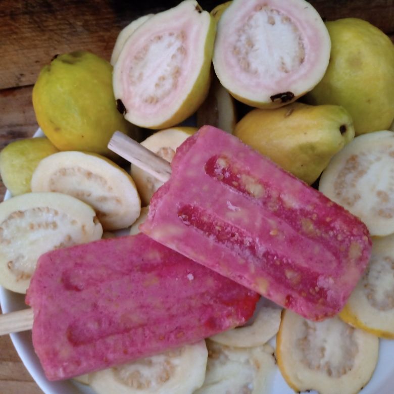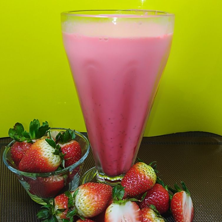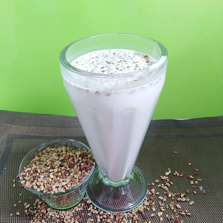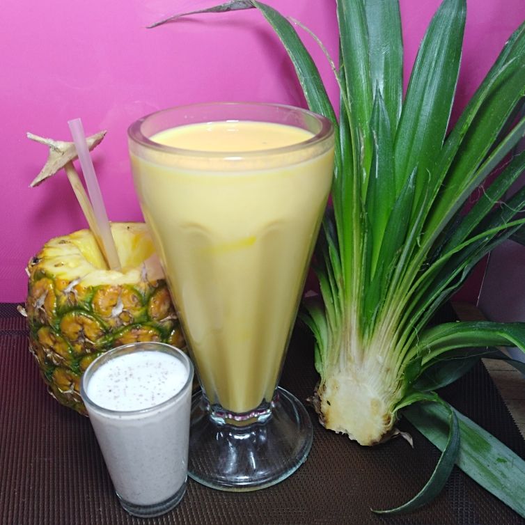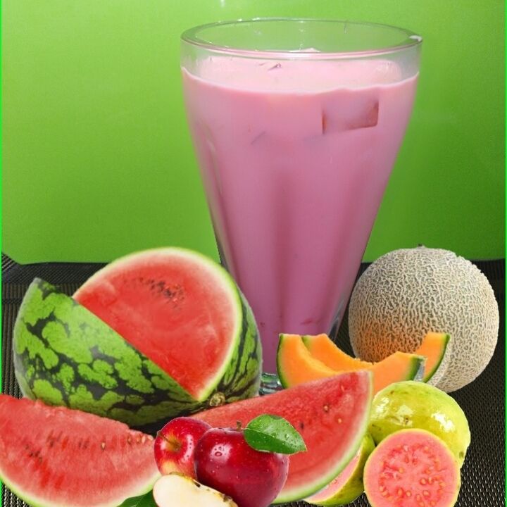 agua cremosa con fruta como manzana ,melon ,guayaba y sandia