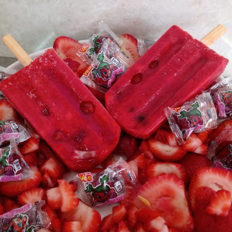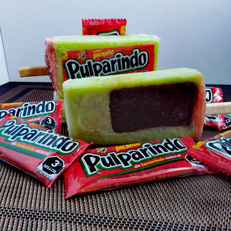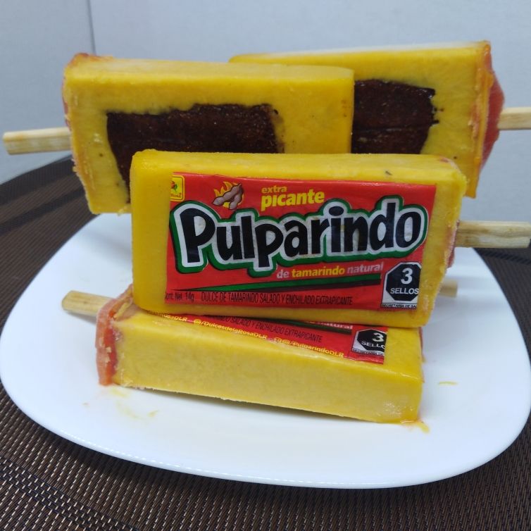 Paleta sabor limón rellena de chamoy y su dulce de pulparindo.