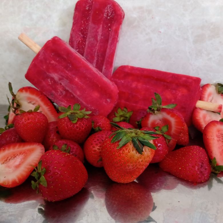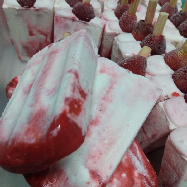 Vaso de 16 oz con fresas congeladas en trozos acompañado de chocolate y cereal