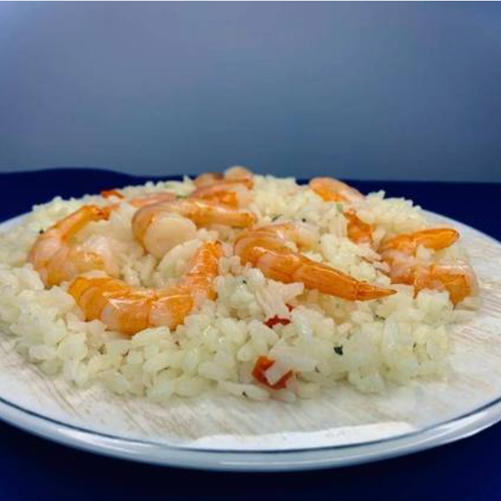 Delicioso camarón coctelero (12 pzas,) preparados en una base de arroz blanco, con un ligero toque de mantequilla.