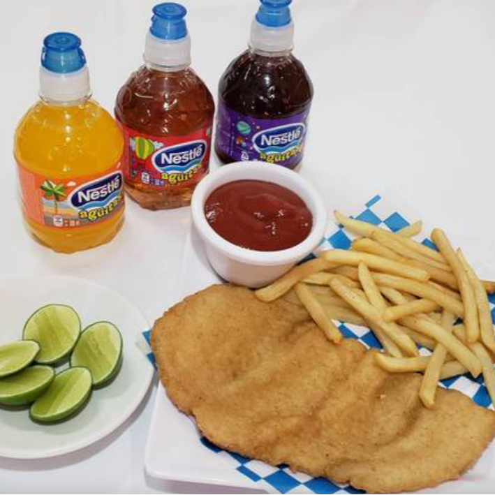 80 g De delicioso filete de pescado empanizado, acompañado con guarnición a su elección.
