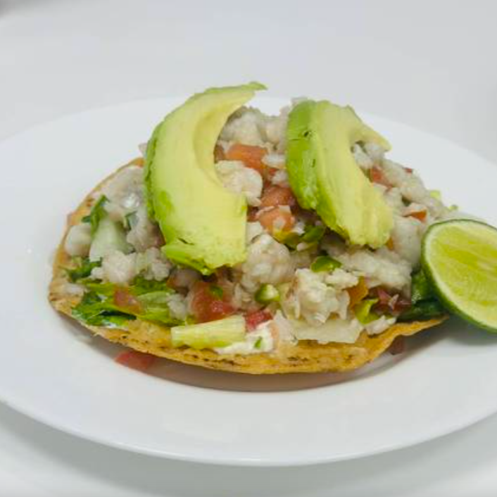 Deliciosa tostada de ceviche de surimi preparada con la receta secreta de la casa.