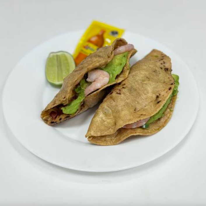 Deliciosas quesadillas de camarón, preparadas con pico de gallo y aguacate.