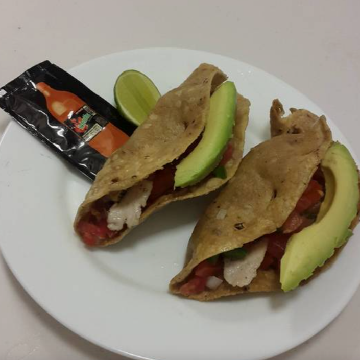 Exquisitos pescadillas de cazón preparadas con pico de gallo y aguacate.