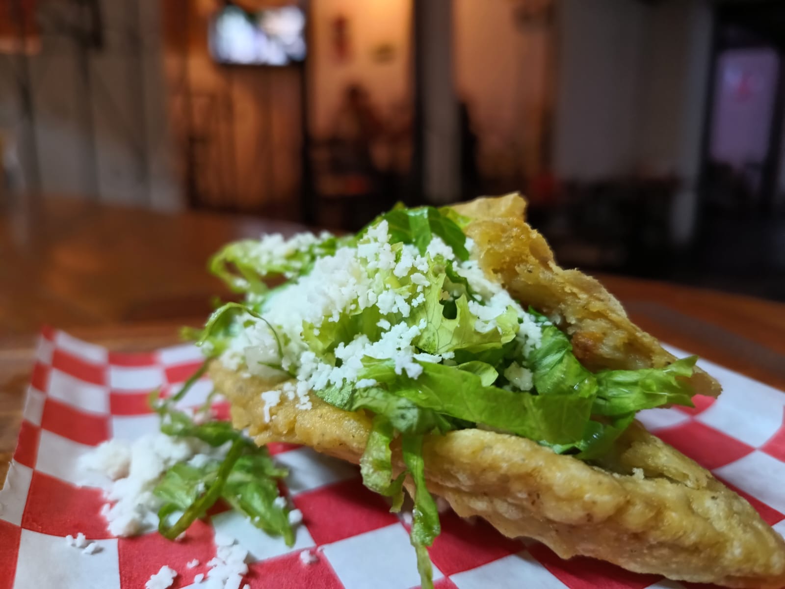 Gordita de Carnitas con lechuga y queso rallado, salsa por aparte