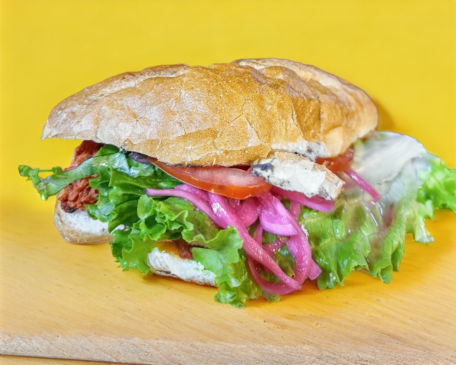 BOLILLO GRANDE CON FRIJOLES, JITOMATE LECHUGA,CHILES Y JAMON DE PAVO