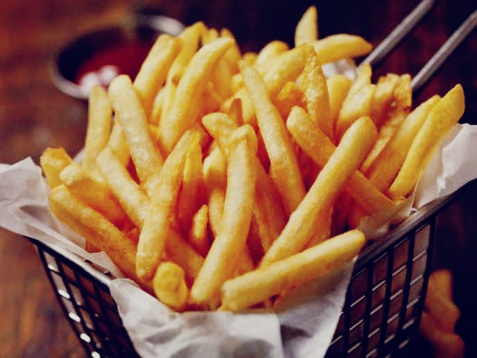 12 piezas de alitas de pollo bañadas en salsa BBQ acompañadas de zanahoria apio y papas a la francesa