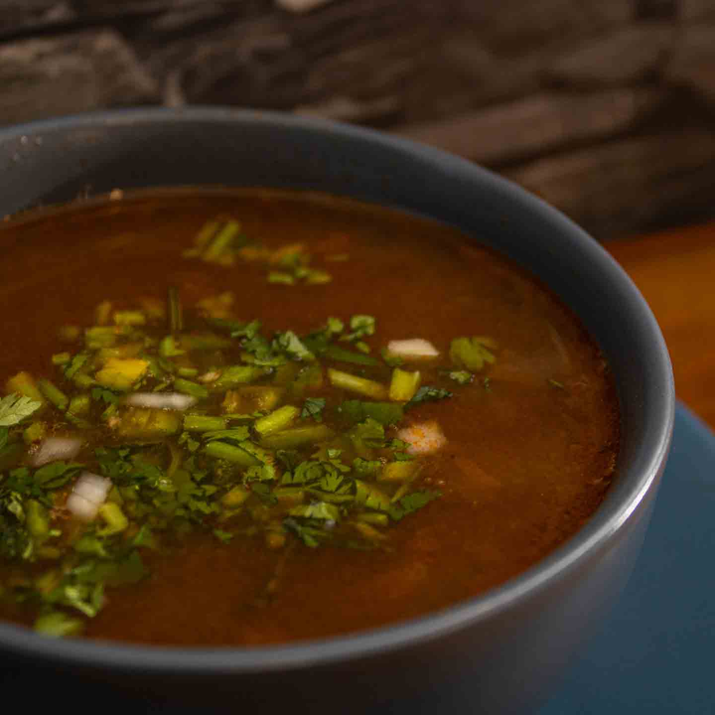 Arrachera asada a la parrilla, incluye doble guarnición.