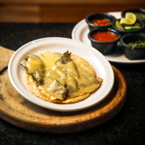 Taco de arrachera, taco de bistec y dobladita de queso.