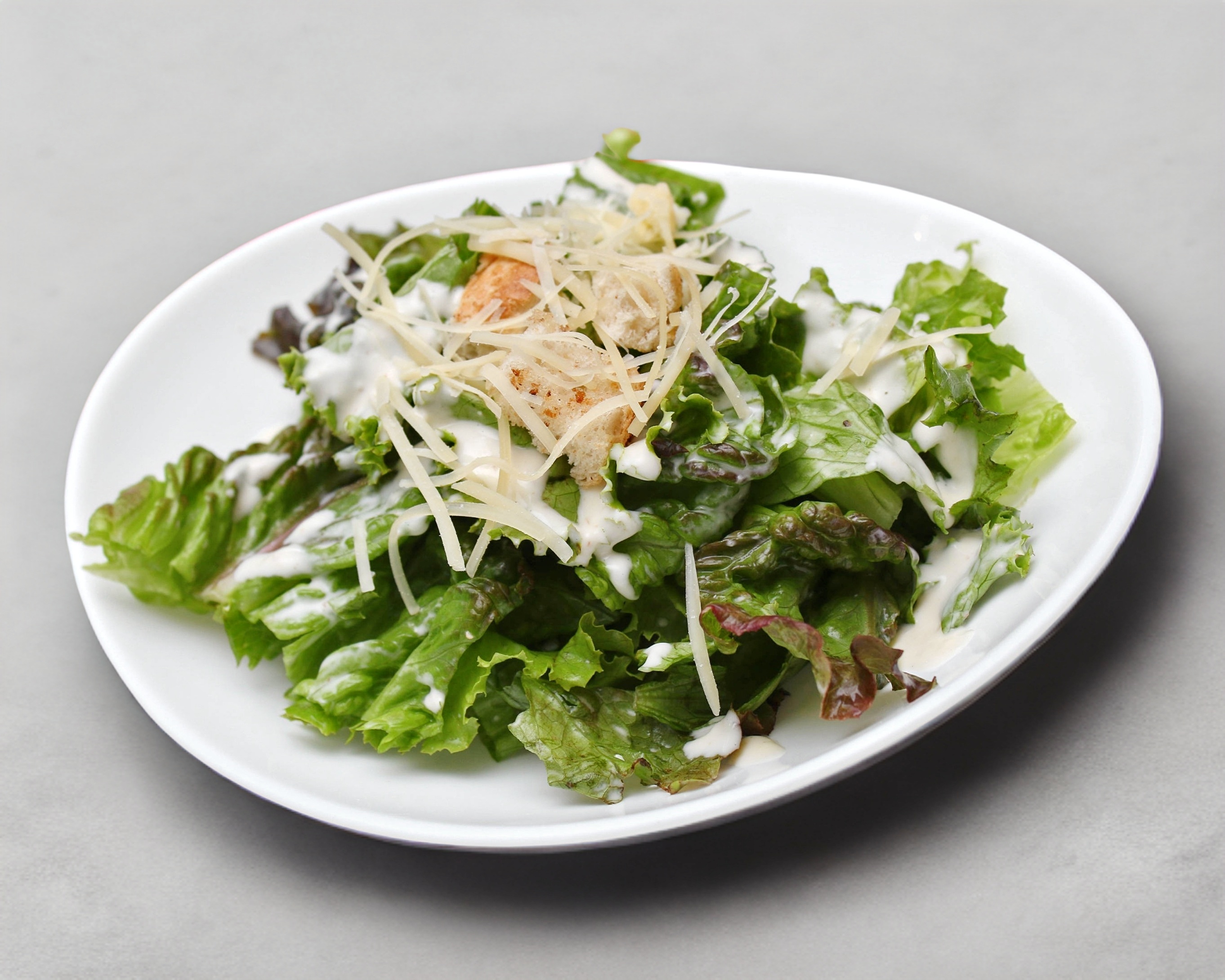 Tradicional ensalada con aderezo césar, crotones de pan de ajo y queso parmesano.