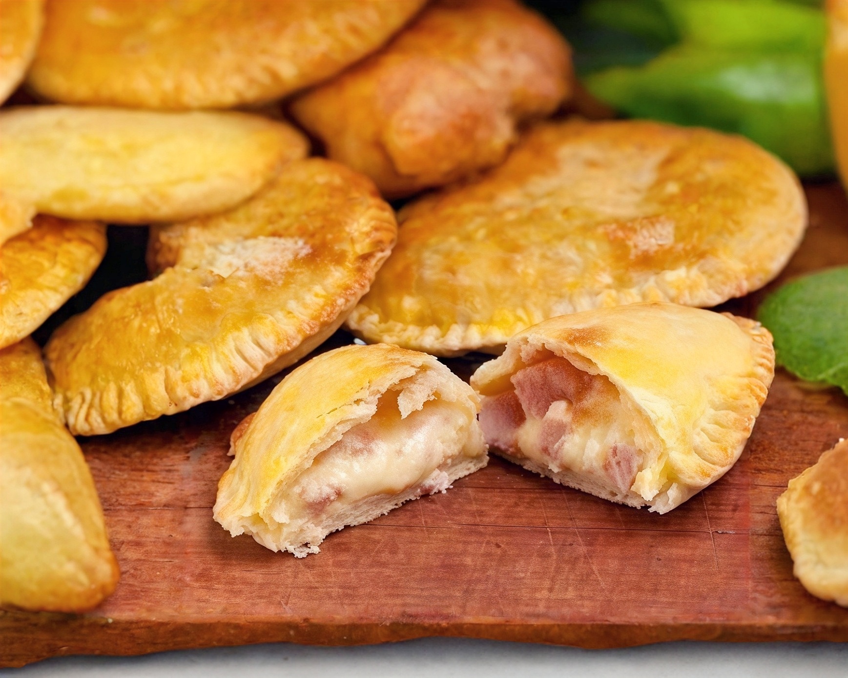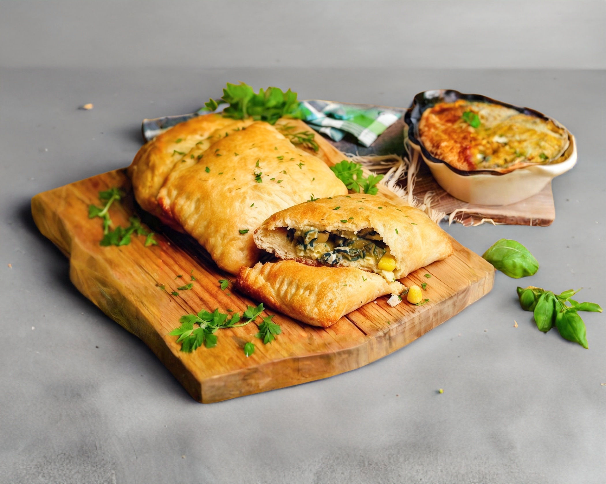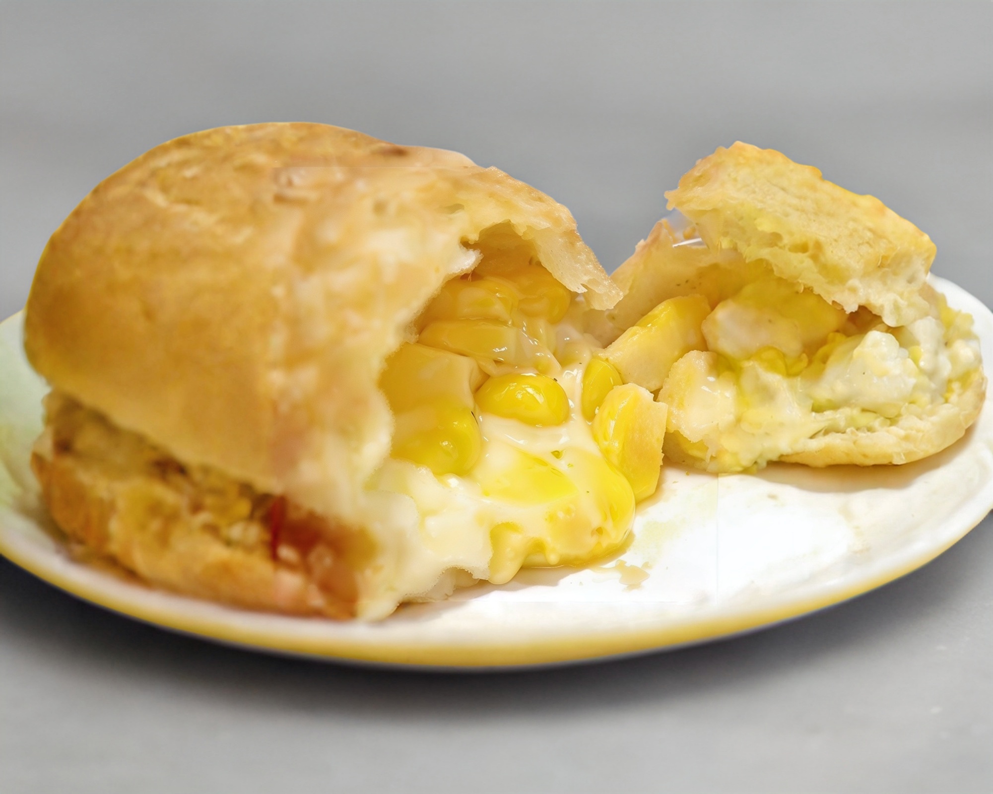 Rellena de rajas poblanas, granos de elote y combinación de quesos.