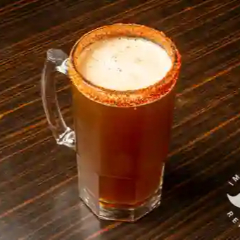 Michelada con jugo de limón, salsas secretas escarchada con limón, sal y cerveza a elección.