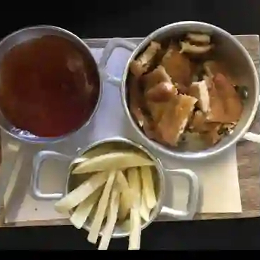 Cubierto en salsa especial con mostaza y sellado a las brasas, acompañado de ensalada y arroz.