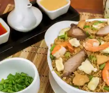 Arroz con mezcla de mariscos, camarón, mejillones, almejas, pulpo, sazonados con un toque de ajo y vino blanco.