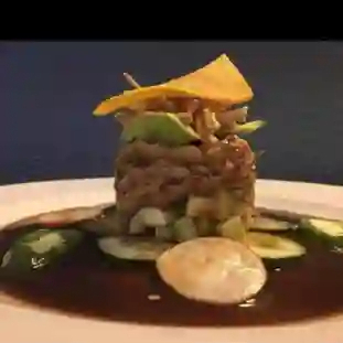 Atún fresco en cubos con cebolla, cilantro, jitomate, toque de salsa de soya, limón, orégano, aguacate y aceite de oliva de España.