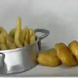 6 Nuggets de pollo con papas a la francesa.