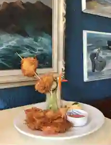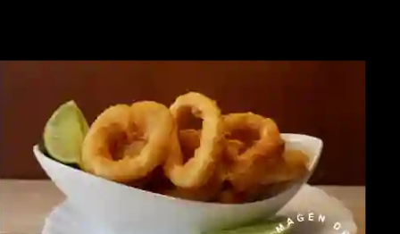 10 Aros de calamar rebozados y fritos acompañados con salsa de alioli.