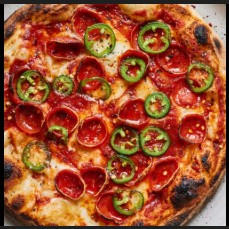Pizza con pepperoni y jalapeños, 8 porciones.