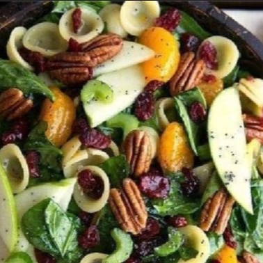 Mix lechuga de temporada con manzana, uvas, nuez tostada, vinagreta italiana, arándano deshidratado y queso de cabra cenizo.