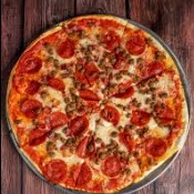 Pizza con salchicha italiana, tocino y pepperoni, 8 porciones.
