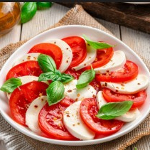 Tomate rojo, albahaca y queso mozzarella.
