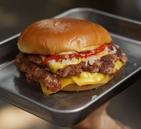 Pan brioche, 2 carnes de 140 g smash, 3 quesos americanos, kétchup, mostaza, cebolla y pepinillos. Un homenaje a la emblemática hamburguesa del payaso que, con su inconfundible aroma y sabor, te llevará de inmediato a esos entrañables momentos de comida rápida en compañía de amigos o familiares.