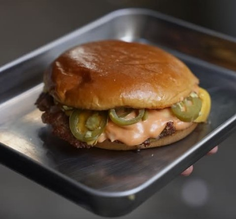 Pan brioche, 1 carne de 140 g smash, 2 quesos americanos, jalapeño y serranos encurtido (caseros), aderezo la sociedad, jalapeño serrano, nuestra rebelde consentida, te sugerimos combinarla con cebolla y tocino, una mezcla que realza su sabor con notas ahumadas y una textura crujiente irresistible. No te pierdas esta experiencia de sabores.