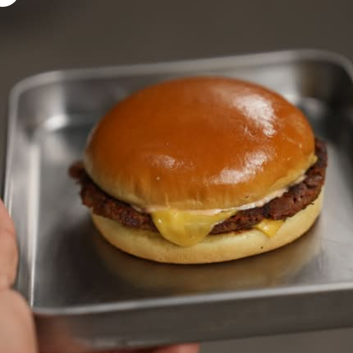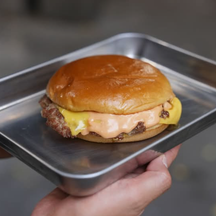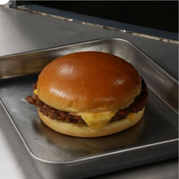 Pan de papa, 1 carne (beyond meat), 2 quesos americanos, aderezo la sociedad.