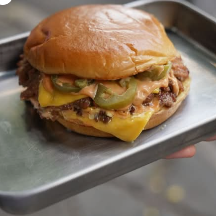 Pan de papa, 2 carnes de 140 g smash, 3 quesos americanos, jalapeño encurtido, aderezo la sociedad. ¡La jalapeño, nuestra rebelde consentida! Te sugerimos combinarla con cebolla y tocino, una mezcla que realza su sabor con notas ahumadas y una textura crujiente irresistible. No te pierdas esta experiencia de sabores.