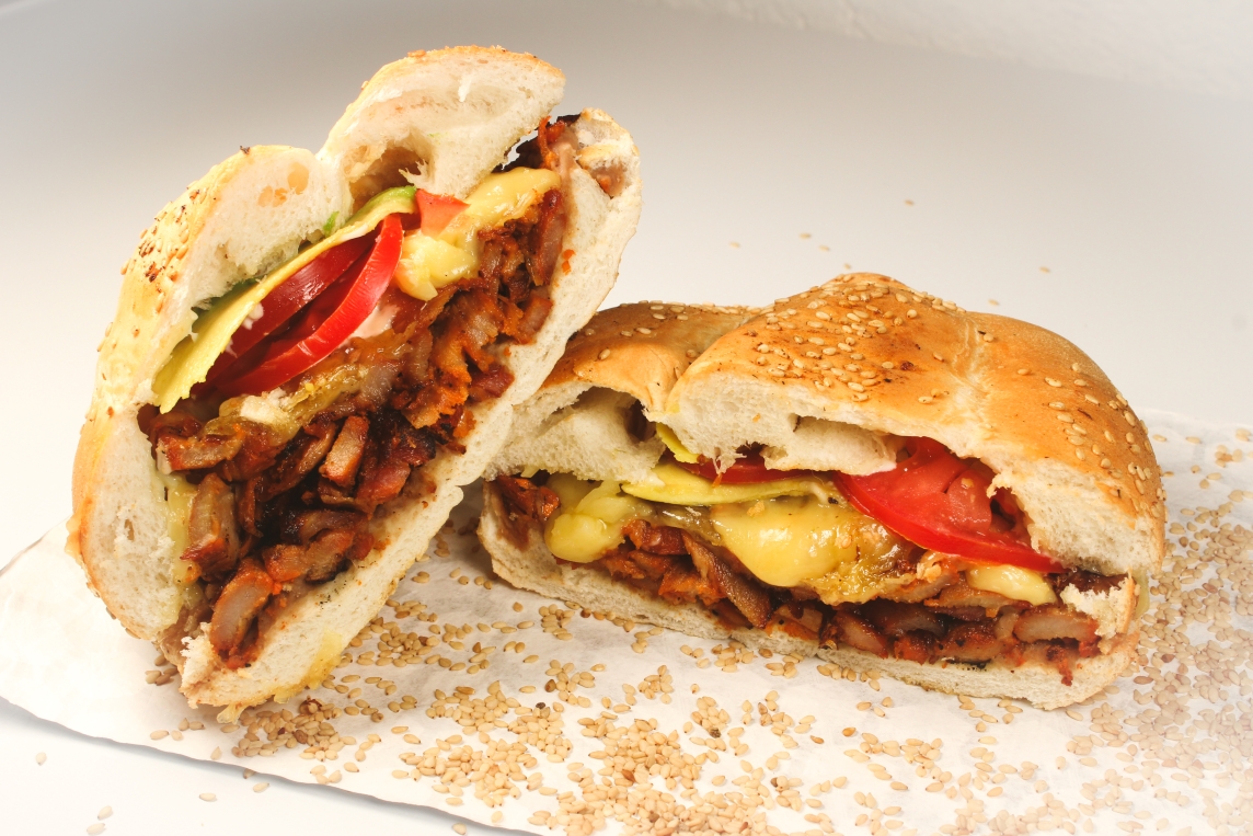 150grs de carne al pastor, telera untada a elegir con mantequilla o mayonesa, frijoles, jitomate y aguacate