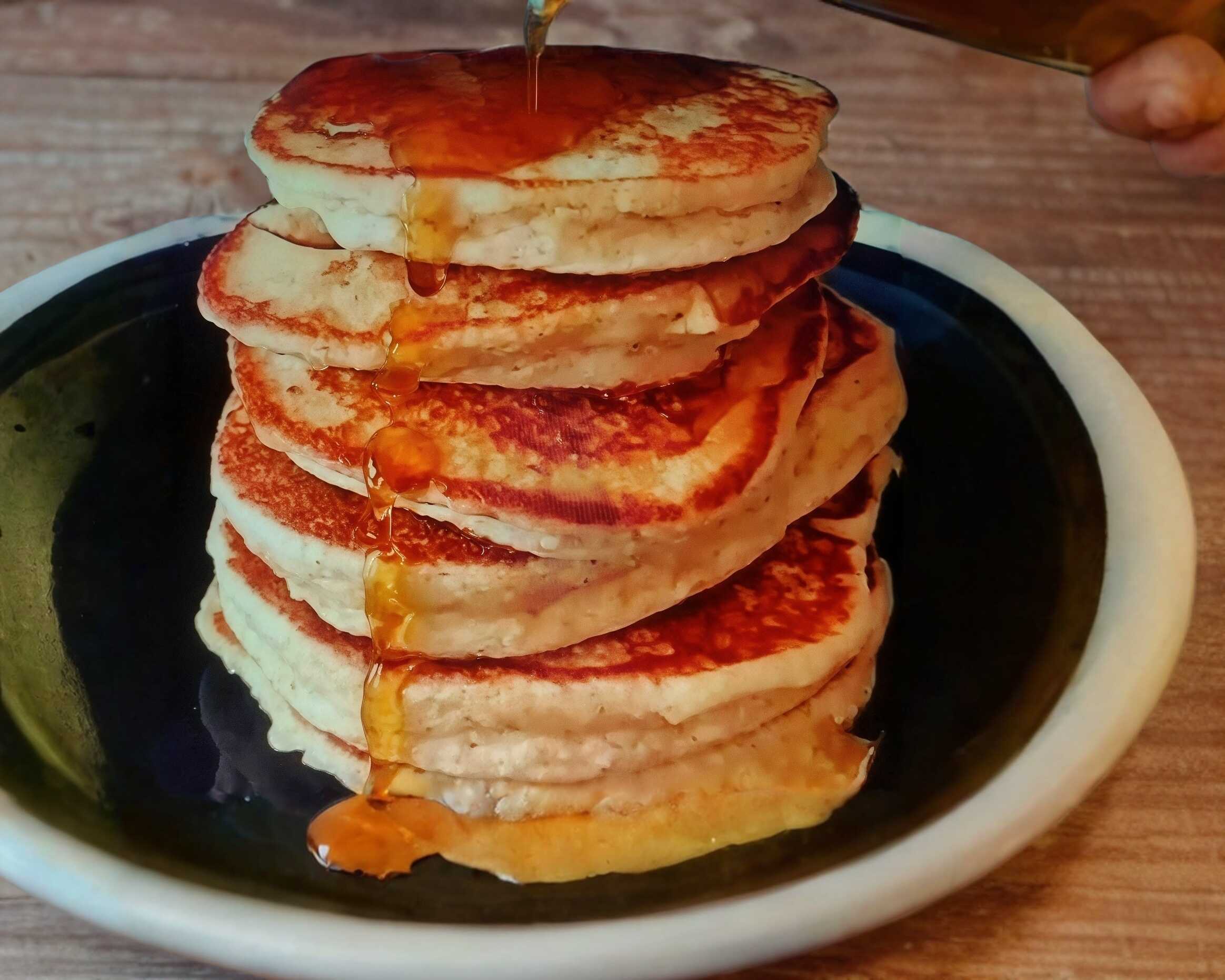 2 paquetes de 3 hot cakes cada uno, con maple o mermelada o lechera