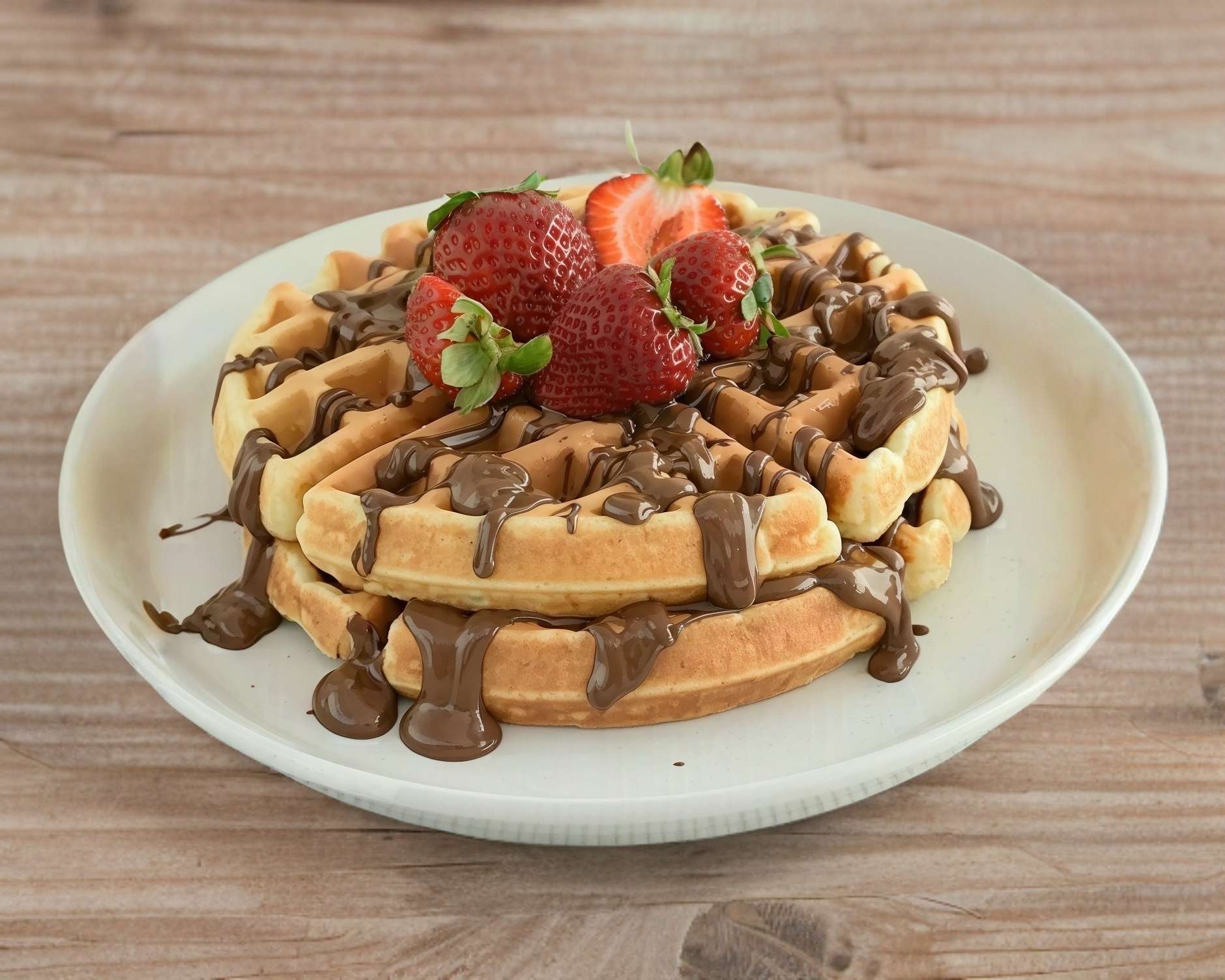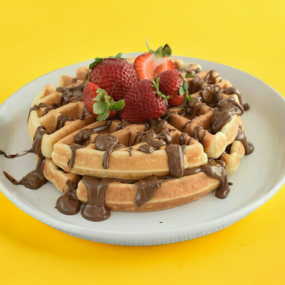 2 Waffles con un toping de fruta y un dulce a elegir