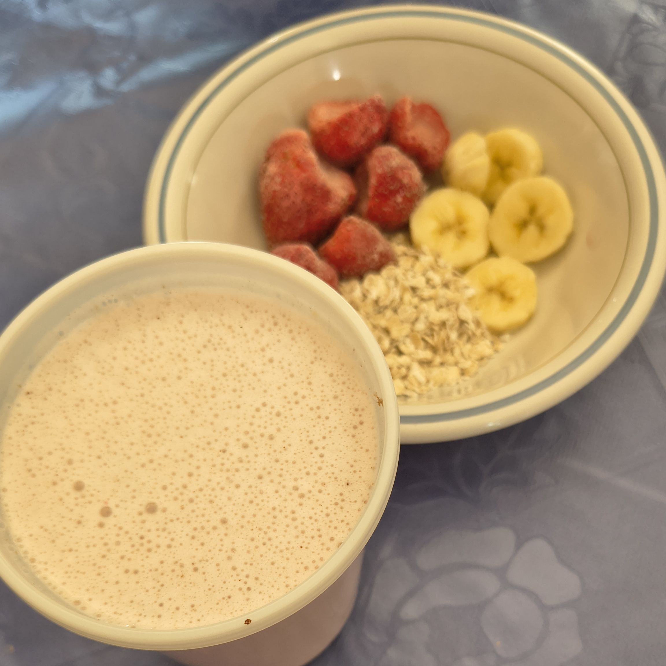 Un medio de litro de leche combinado de platano, fresa , avena