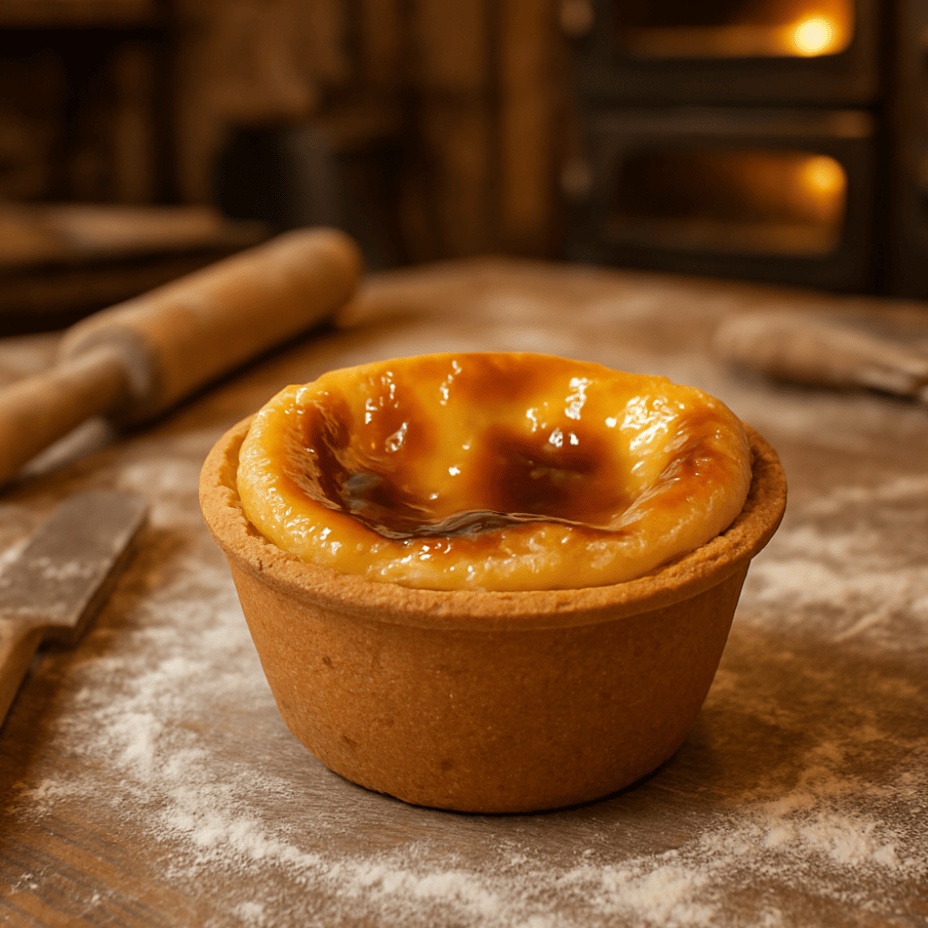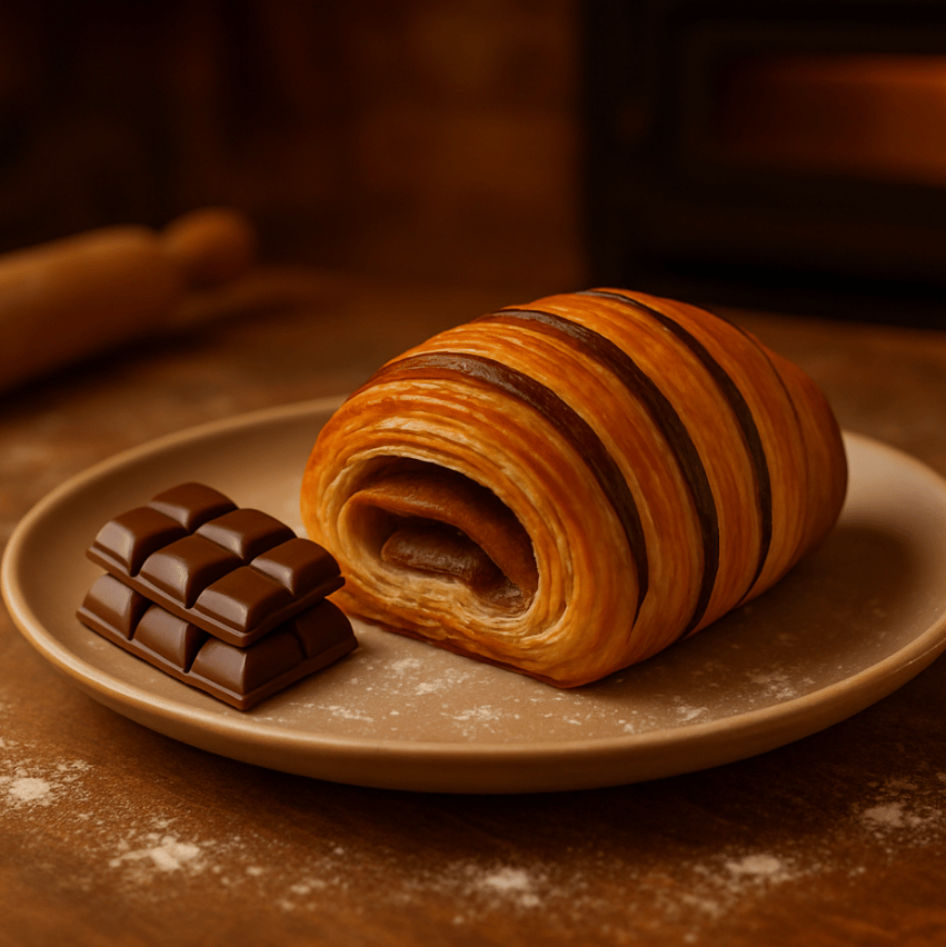 Pasta de hojaldre, relleno de crema pastelera y nuez.