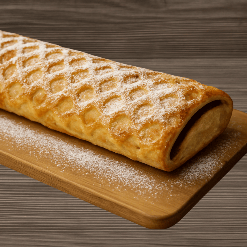 Ideal para 10 personas. Pasta hojaldre, relleno de manzana con canela y nuez.