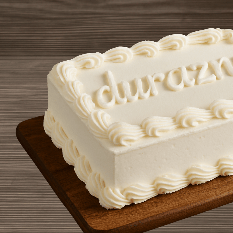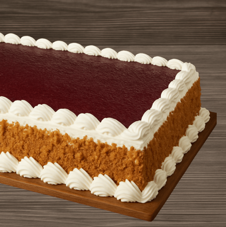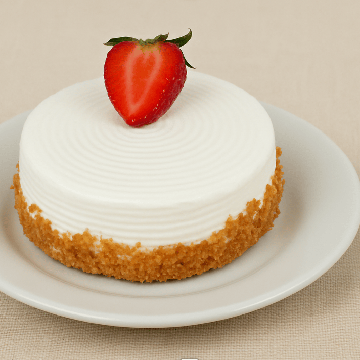 Pan de vainilla, relleno de fresas con crema, y cubierto de crema.