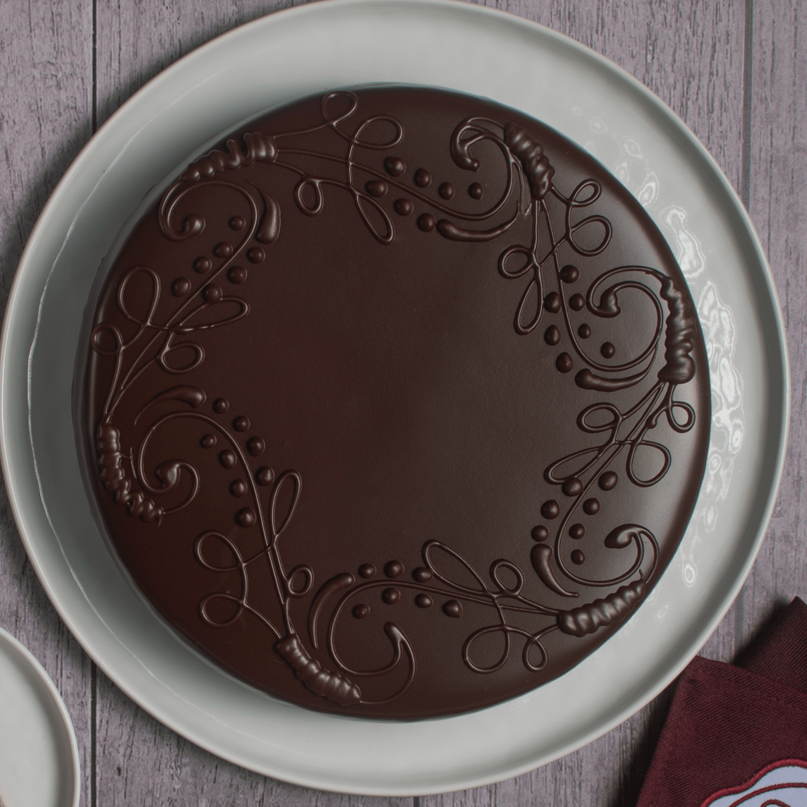 Base de galleta y queso con chocolate.