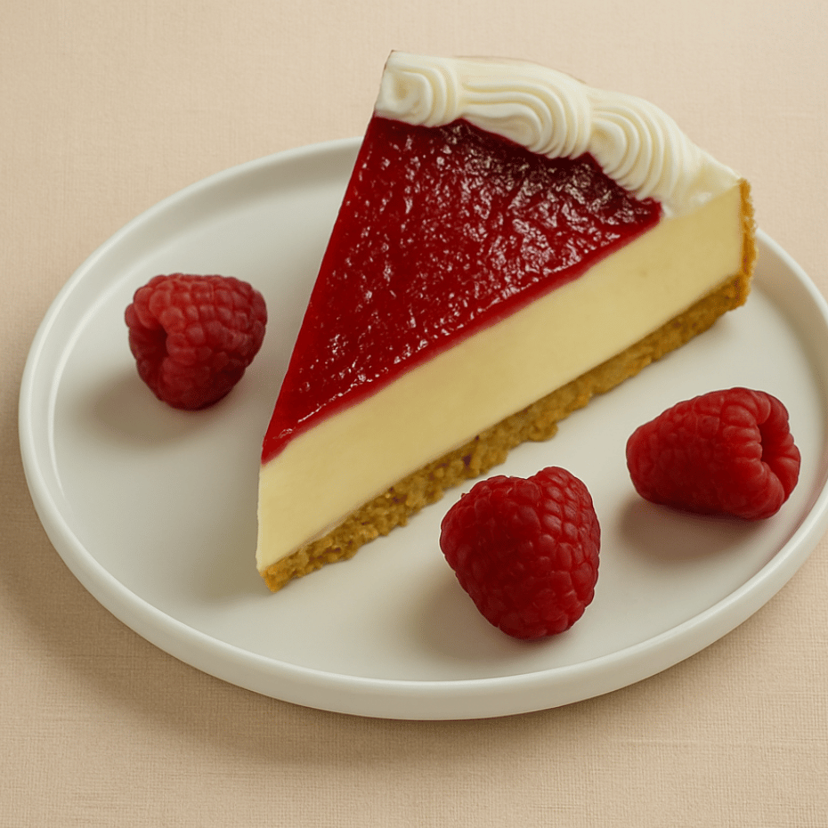 Rebanada de pastel a base de galleta, queso con mermelada natural de zarzamora.