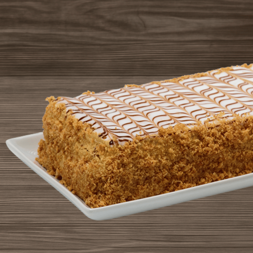 6 Rebanadas. Pastel con pasta de hojaldre, relleno de crema pastelera y nuez.