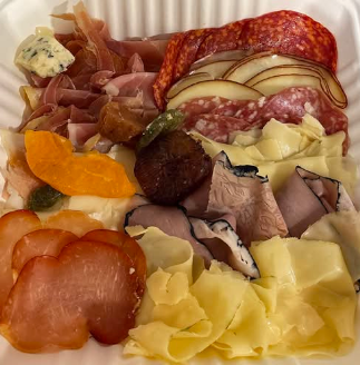 250 g De nuestra variedad de charcutería fina y quesos para degustar: jamón serrano reserva español, roast beef, chorizo pamplona español, chorizo salamanca español, chorizo sarta español, salami, lomo embuchado, gruyere holandés, manchego de oveja curado español, brie importado, gouda plato rojo holandés, azul danés, mozzarella, provolone, cabra.