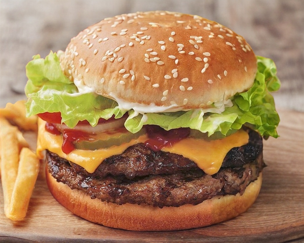 Hamburguesa con 150grs de carne de res y papas a la francesa